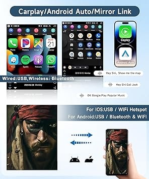 CAMECHO 10.36 Inch Portable Car Stereo Full HD Touchscreen CarPlay Screen with Wireless CarPlay Android Auto Bluetooth Hands-Free Backup Camera 64G Card Support Mirror Link, FM, GPS, Aux Input