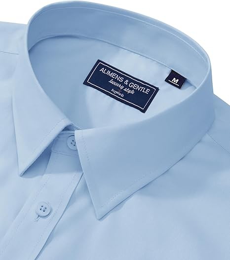 Alimens & Gentle Men's Dress Shirt Regular Fit Stretch Stain Shield Long Sleeve Solid Business Wedding Button Down Shirts