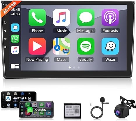 CAMECHO 10.36 Inch Portable Car Stereo Full HD Touchscreen CarPlay Screen with Wireless CarPlay Android Auto Bluetooth Hands-Free Backup Camera 64G Card Support Mirror Link, FM, GPS, Aux Input