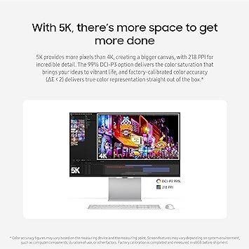 SAMSUNG 27 ViewFinity S9 Series 5K Computer Monitor, Thunderbolt 4, DisplayPort, Matte Display, 4K Slimfit-Camera, Slim Metal Design, AirPlay, Smart-TV Apps, Gaming Hub, LS27C900PANXZA, 2023