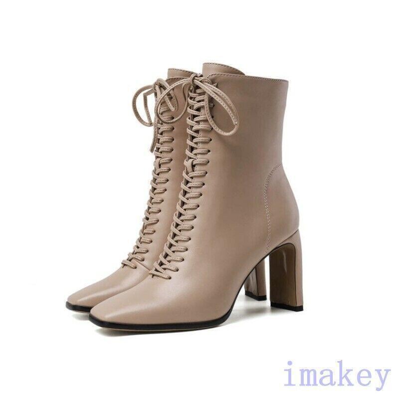Womens Square Toe Lace Up High Heel Ankle Boots Formal Ol Leisure Boots Shoes